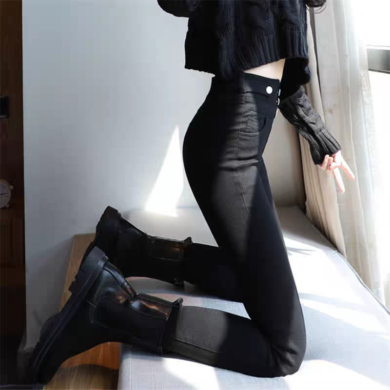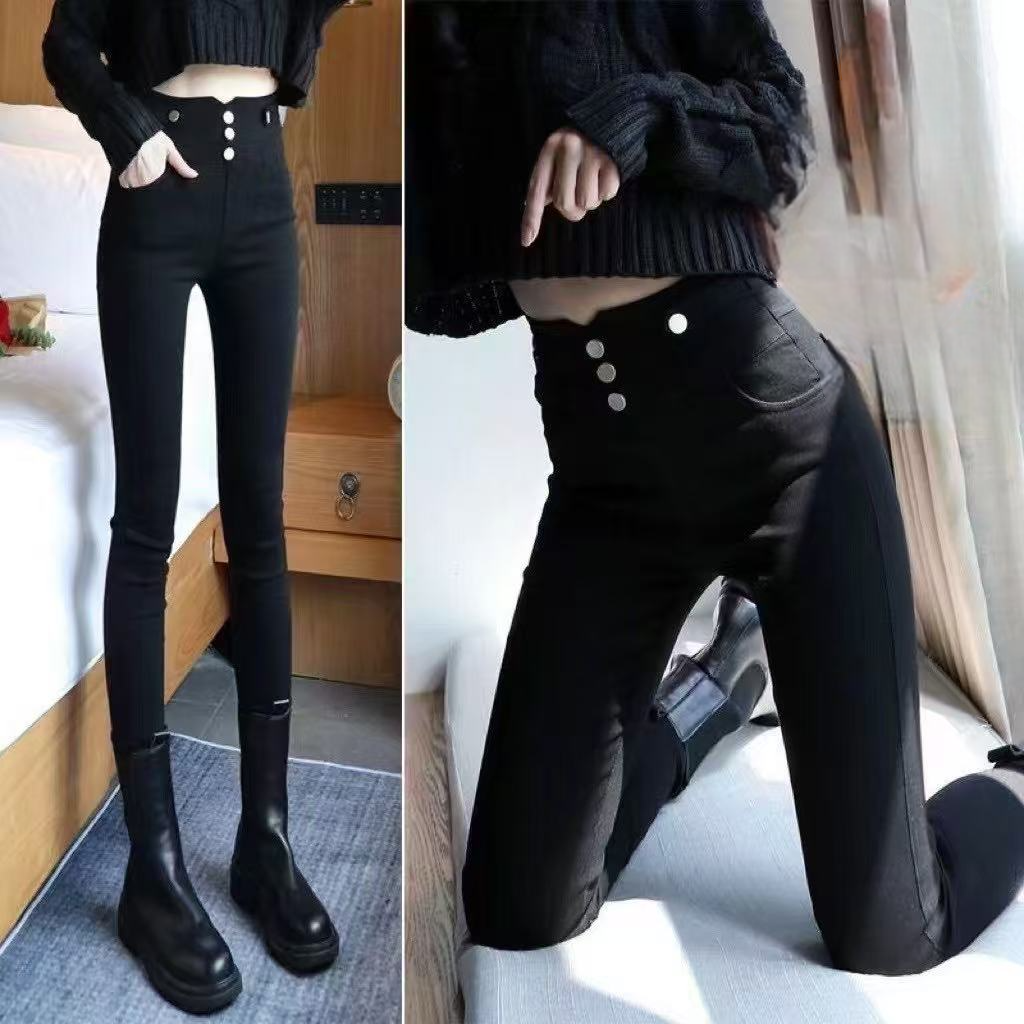 排扣高腰緊身彈性牛仔褲