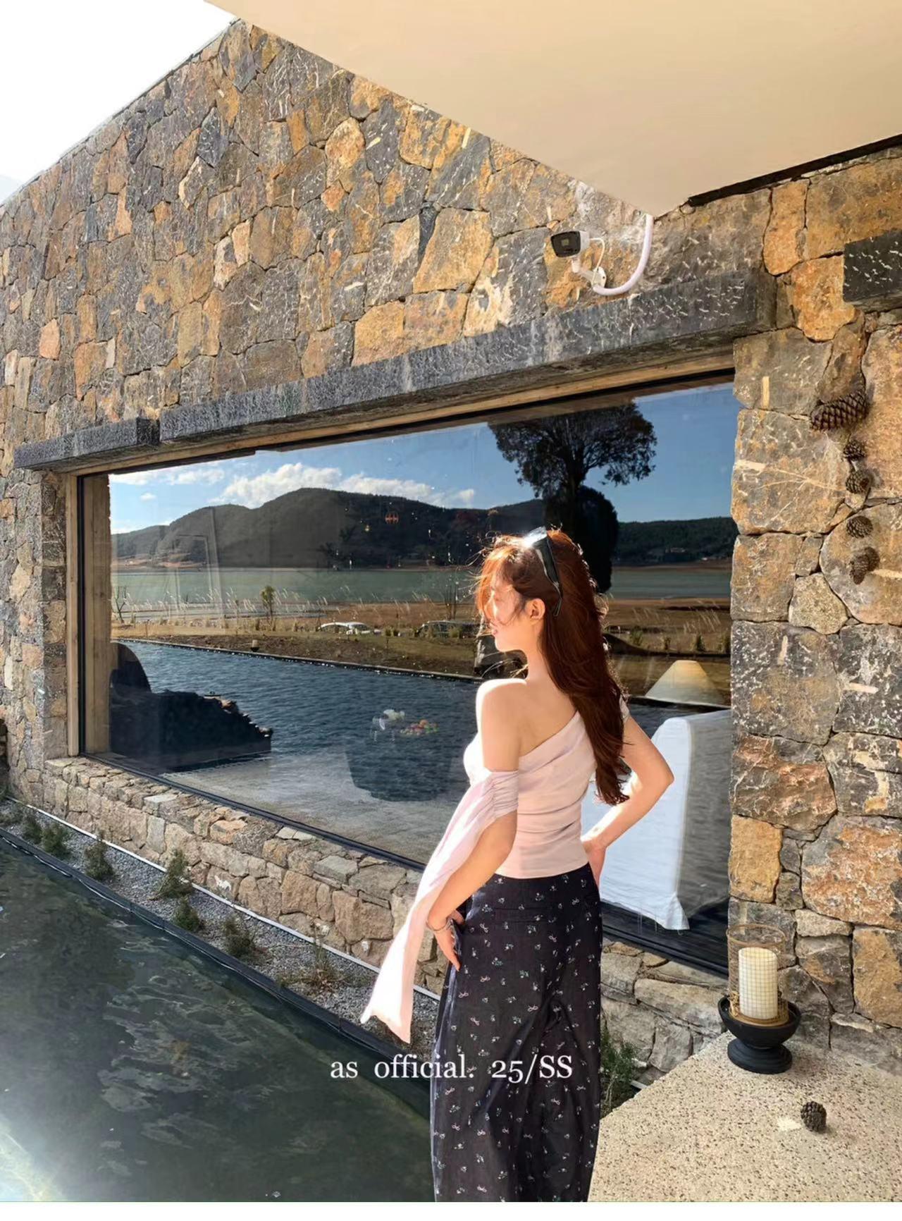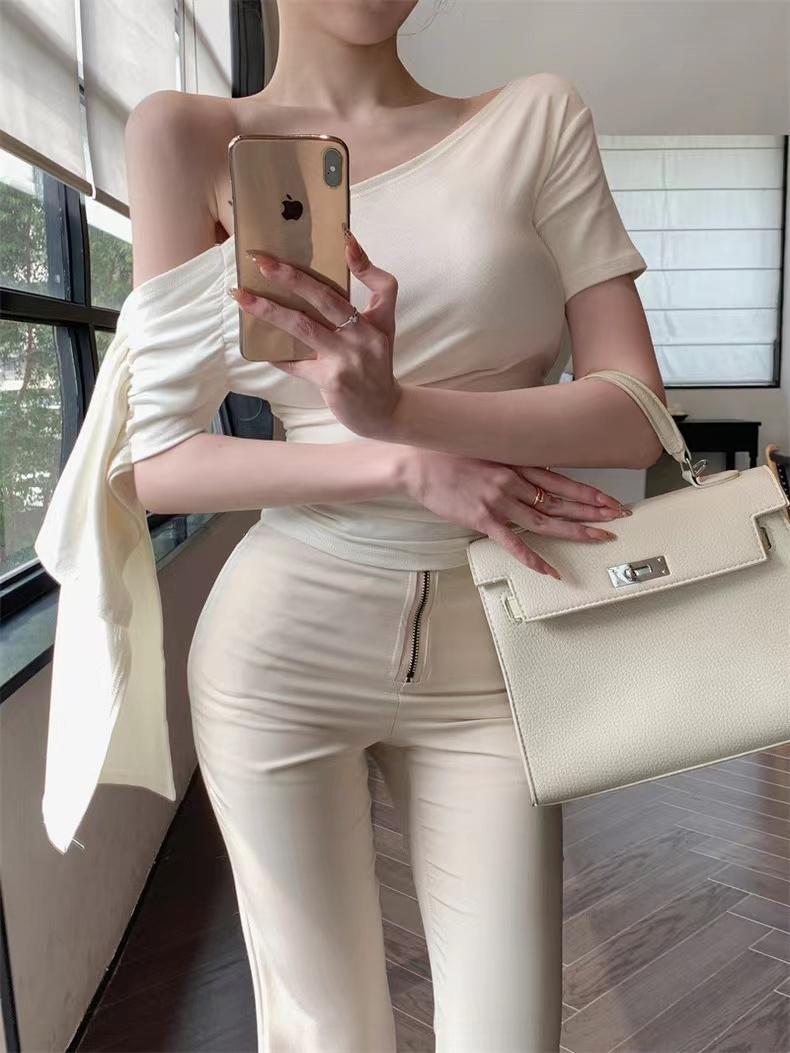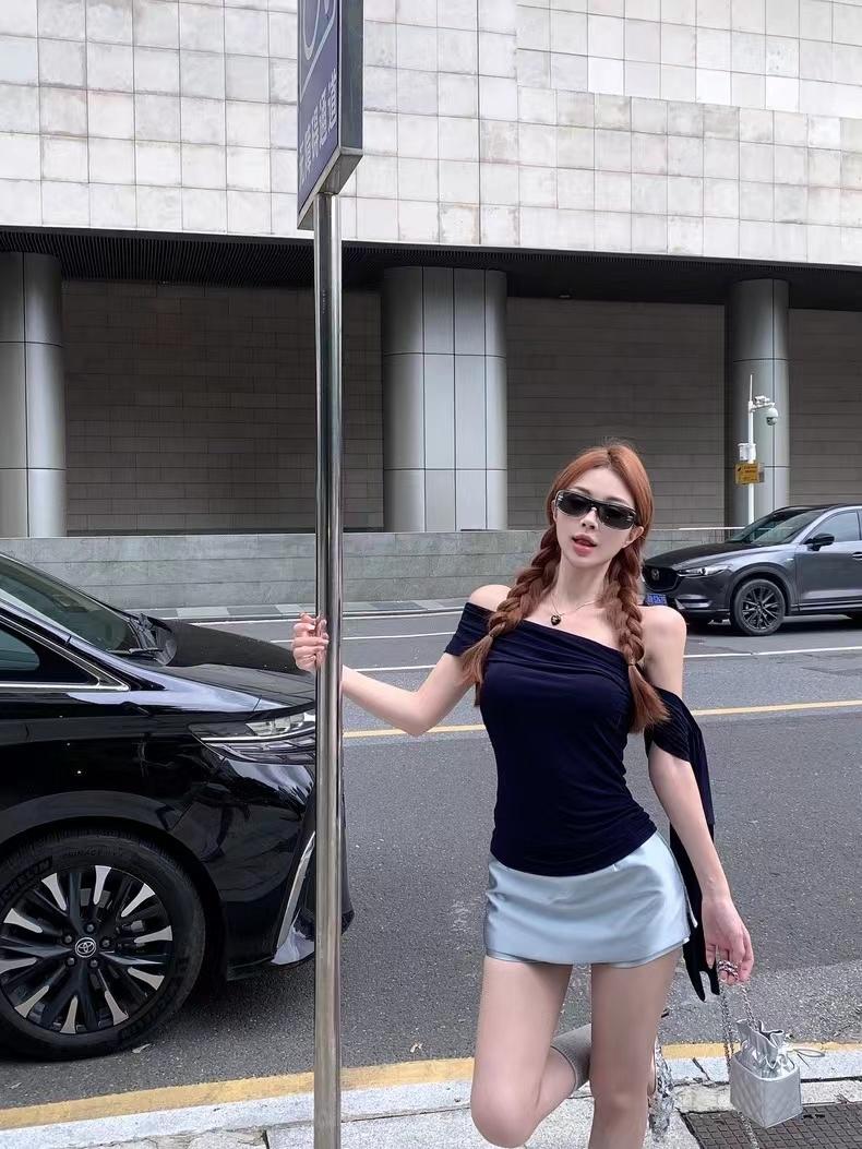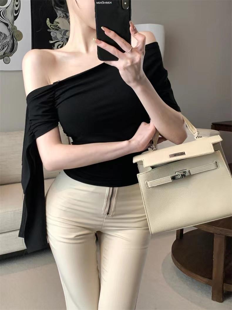 斜肩垂袖上衣